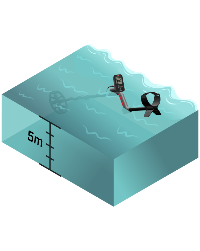 这款探测器的防护等级为 IP68,可防水、防尘和防污,性能丝毫不受影响。它可完全浸入水中,最深可达 5 米(16 英尺),可在浸水环境、潮湿地形和不可预知的天气中使用。在溪流、海岸线、雨水浸泡过的地面和其他苛刻的条件下,仍能不间断地进行可靠的探测。